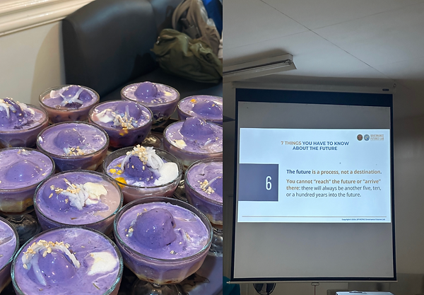 抵達馬尼拉機場後,Mom Noreen 就來接機我們,接著就出發前往 ADB 進行參訪,進到裡面後 Dr.吳讓我們進去參觀了國際會議廳,接著還參觀了圖書館!Dr.吳有跟我們介紹,圖書館內有一個地方有一幅圖是園冶獎的作者在 2023/05/09 當場繪製的!接下來享用完午餐後就前往 UPOU,放完行李後就開始營隊的開幕式,大家各自上台自我介紹後就結束了第一天!